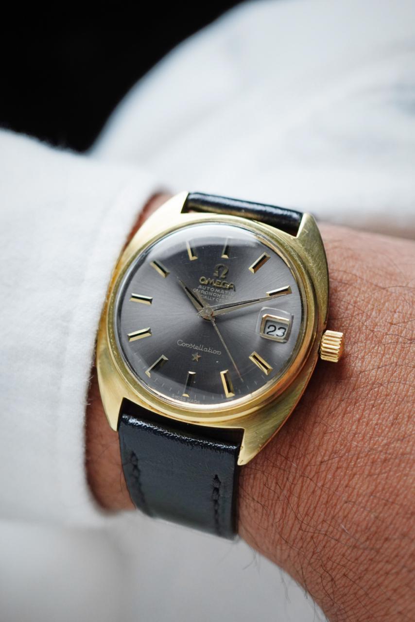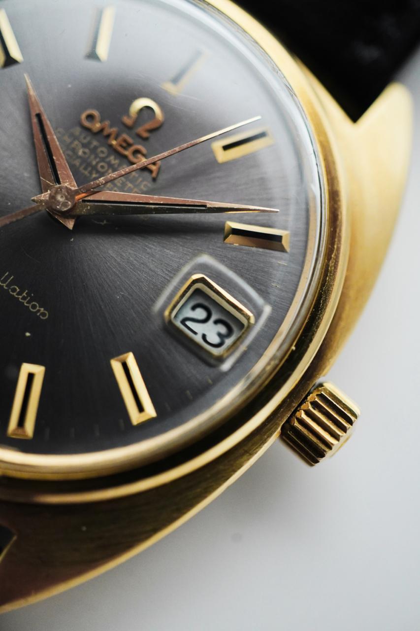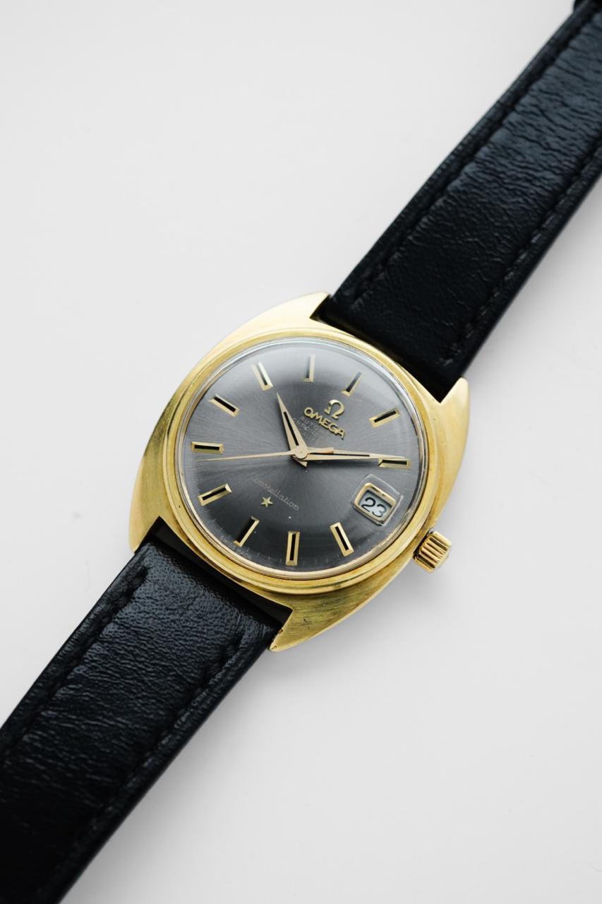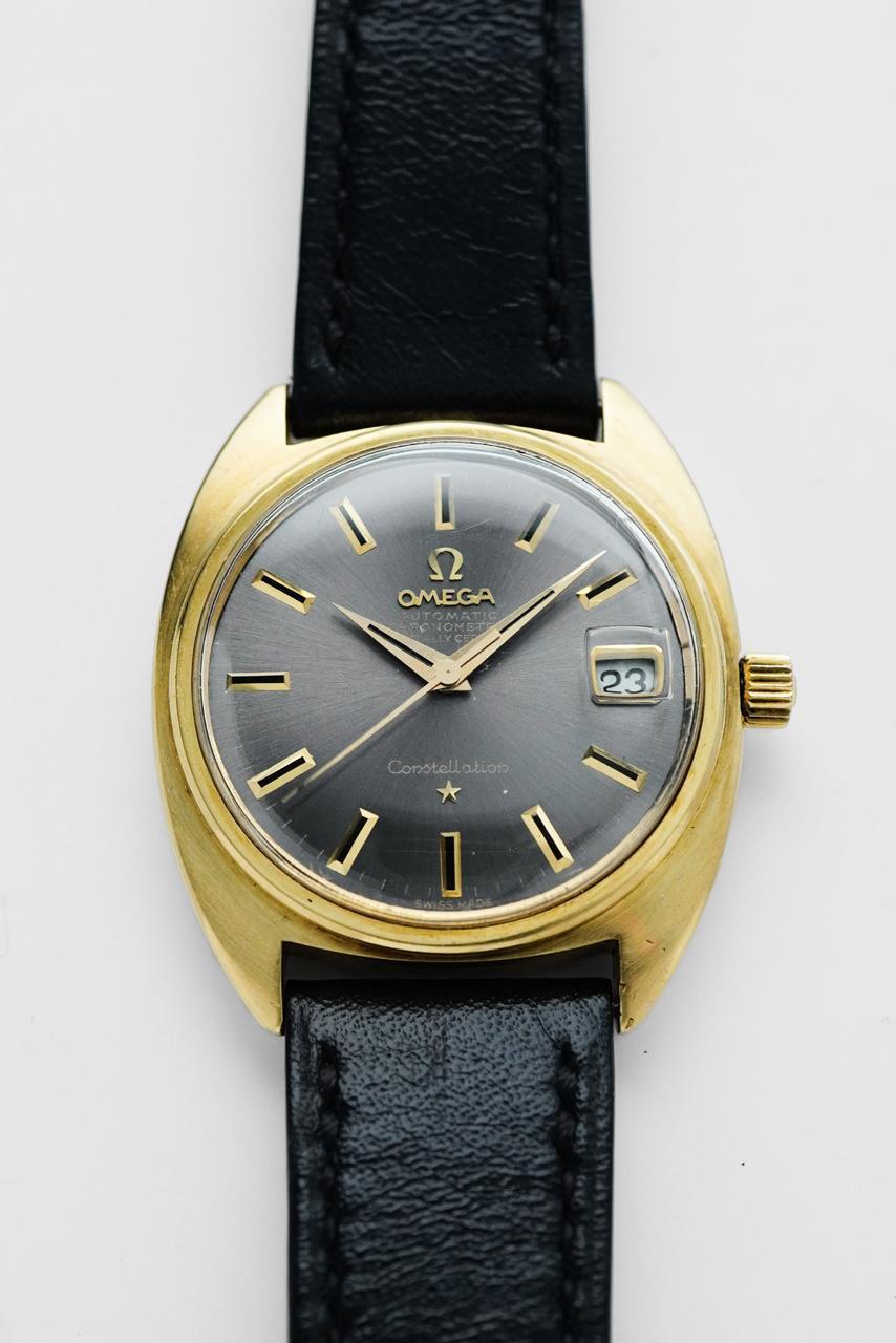 Introduced during the mid 1960s, the Omega Constellation line entered a new design era shaped by the bold, modern aesthetics of the decade. One of the most recognizable designs from this period is the C-Shape case, a distinctive rounded form created by legendary case designer Gerald Genta, giving the watch its smooth, integrated silhouette. This particular example features a beautiful ghost grey dial, a subtle sunburst tone that shifts gracefully under light, paired with applied gold baton indices and hands that create a refined contrast against the darker dial surface. The minimal dial layout retains the signature Constellation star at 6 o’clock, a symbol of Omega’s chronometric achievements and long standing reputation for precision.