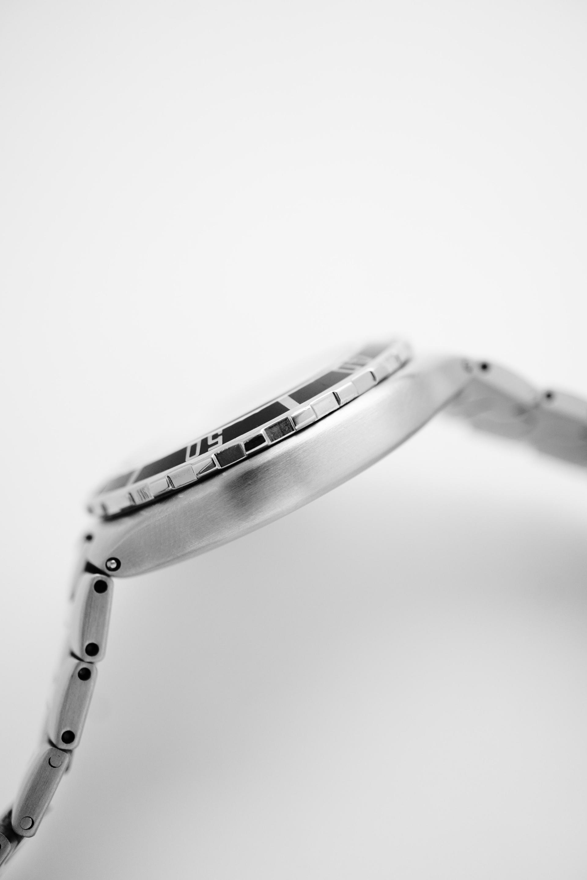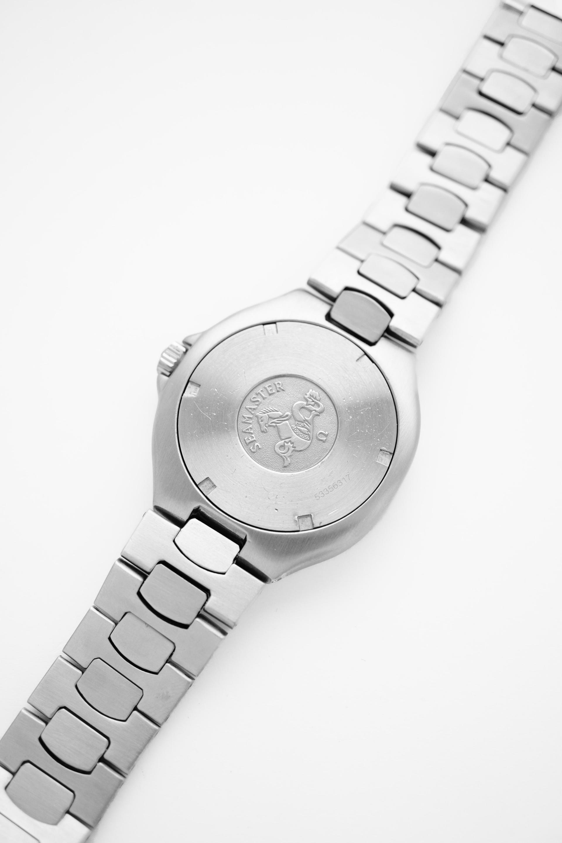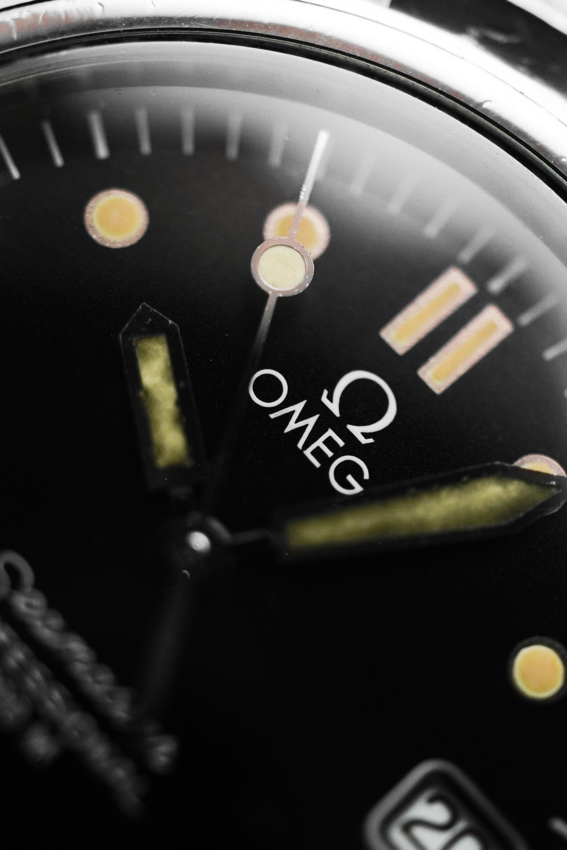 Before the Bond era redefined the Seamaster for a new generation, there was the Pre-Bond. Produced in the late 1980s, this reference represents the transitional period where Omega refined the modern dive watch formula cleaner lines, slimmer case profile, and unmistakable tool watch presence. This Seamaster Pre-Bond 200M features a classic black dial with bold luminous markers, paired with a unidirectional black bezel that delivers pure vintage dive aesthetics. The balanced 36.5mm case gives it the perfect neo vintage proportion compact, sporty, and extremely wearable for daily use. Powered by the reliable Quartz Calibre 1438, this piece offers precision, practicality, and low maintenance ownership. At just 9mm thickness, it wears slimmer than most dive watches, sliding effortlessly under a cuff while still retaining its 200 meter professional capability.